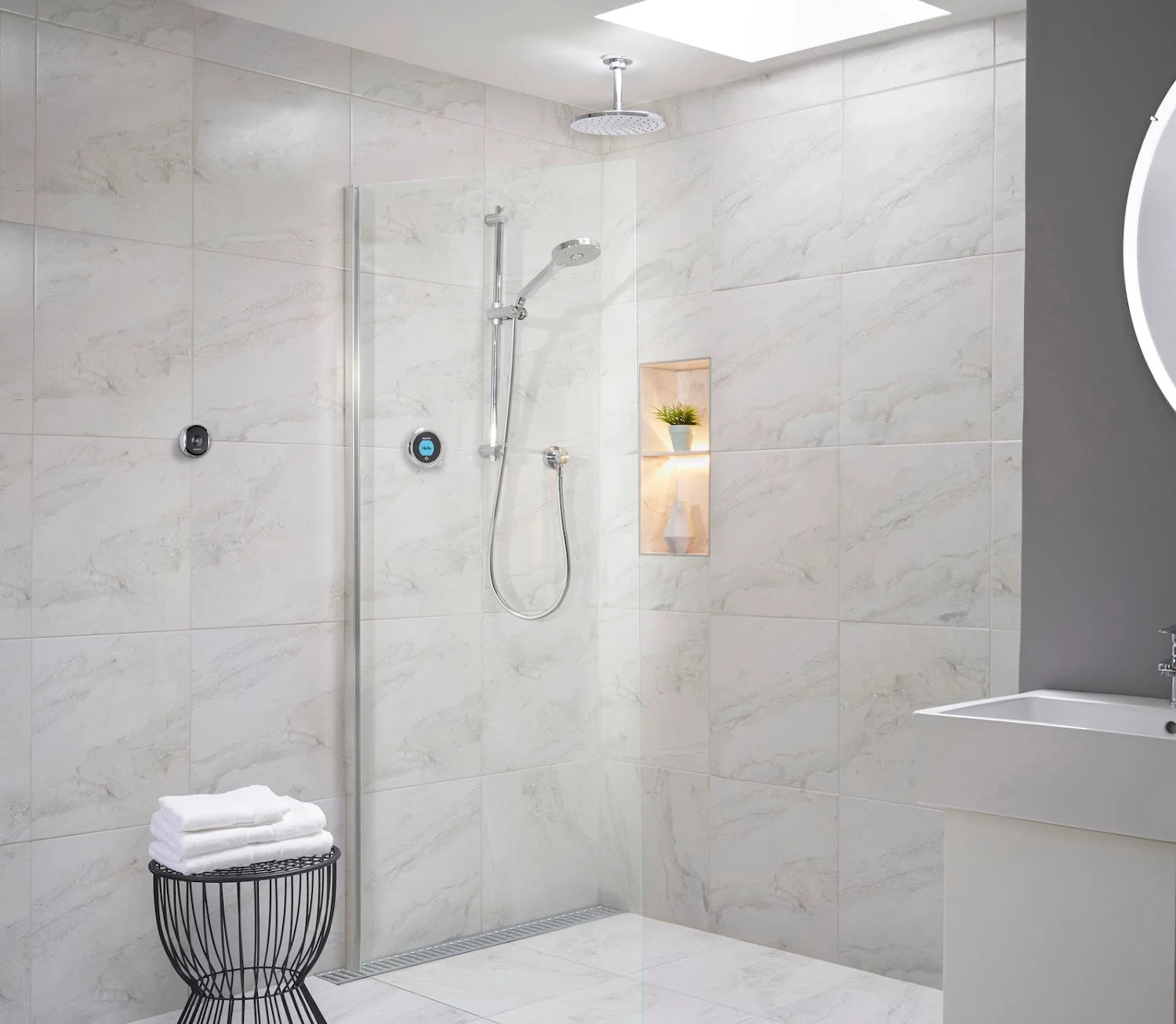 You can use the AQUALISA app on your smartphone, or you can use your voice with Alexa or Google Home to control your smart shower.