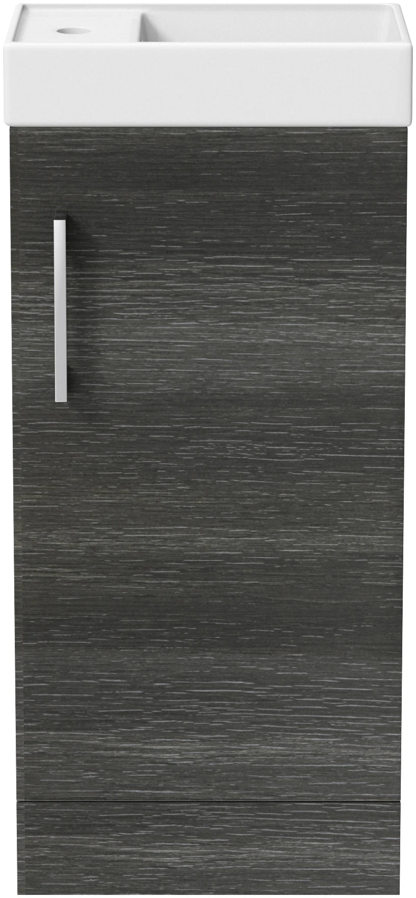 Charcoal grey vanity unit with contrasting chrome handle