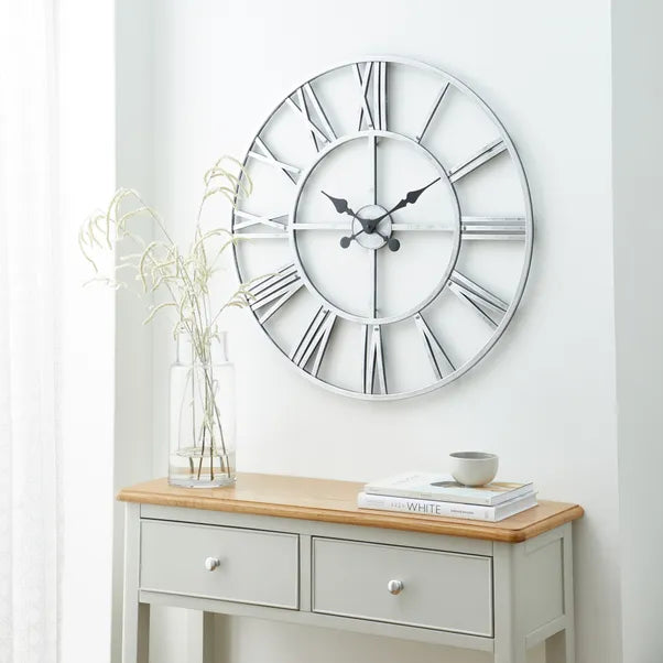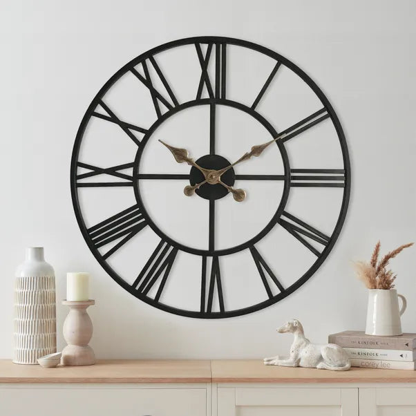 The DUNELM Skeleton Wall Clock is a large oversized vintage style skeleton wall clock. This clock is perfect for adding a focal point to your living room. Classic style gold coloured hands with Roman numerals in a beautiful colour way finish. Contemporary circular shape clock. A practical timeless clock that will complement any wall in your house and complement a variety of home decor.