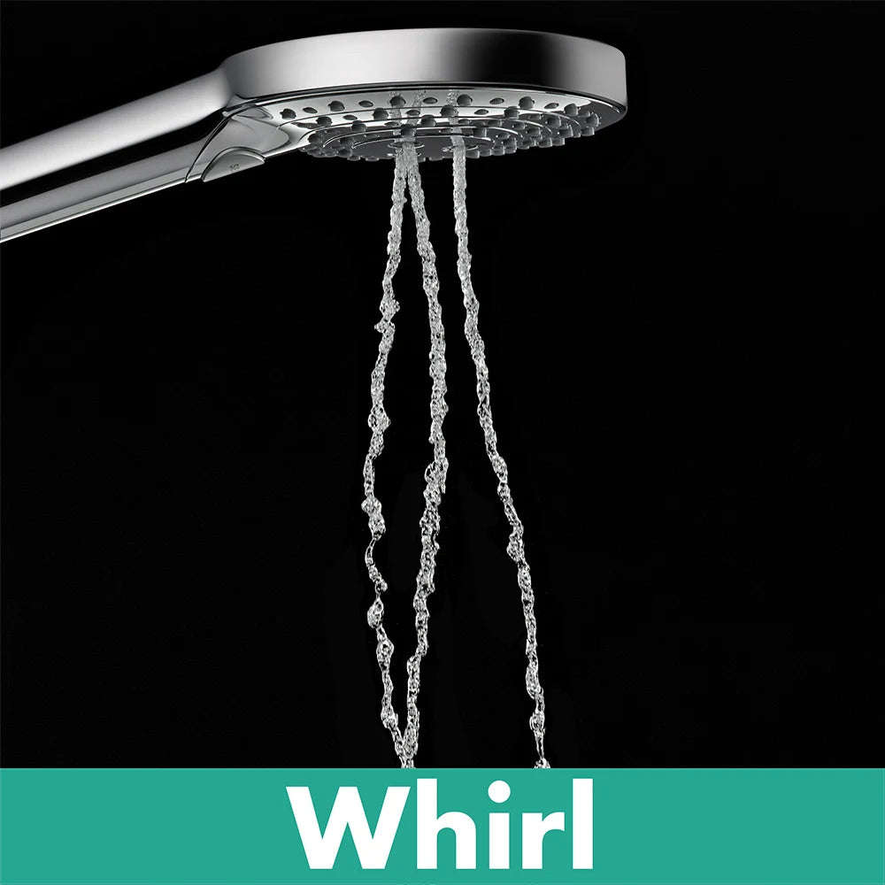 The Whirl: a swirling massage spray that showers away the stress of the day, especially in the neck and shoulders, as the swirling helix jet moves over the skin just like a massage therapist’s fingers.