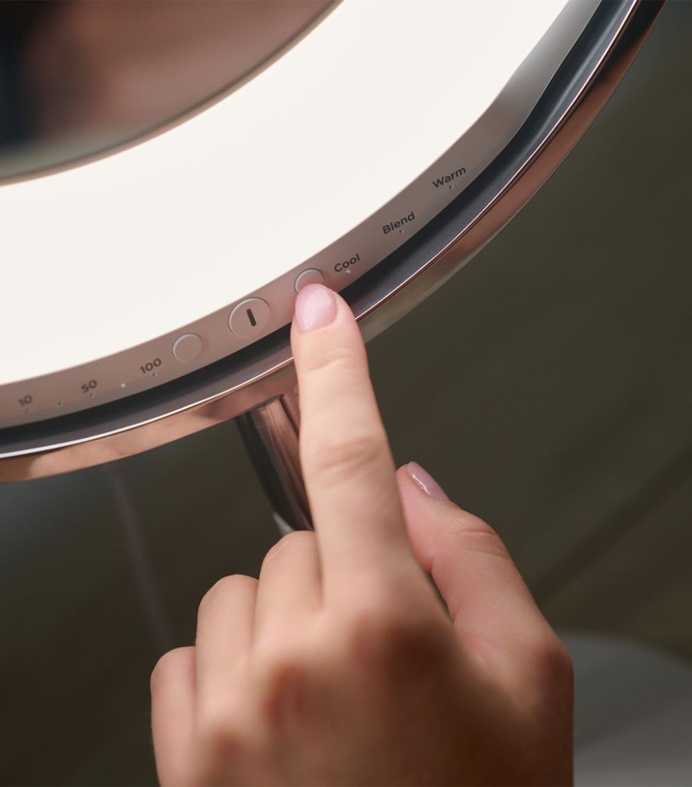 - Ring light, 1x / 5x Magnification reversible mirror, Tabletop base, Phone holder, Power Cord