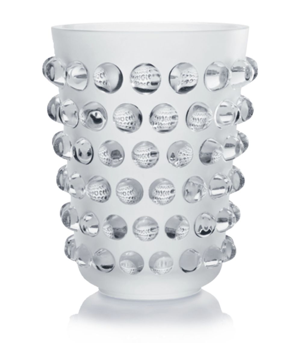 LALIQUE'S Mossi vase takes its shape from the signature silhouette of René Lalique’s original 1933 design, originally conceived in glass. Reframed in gold-tinted crystal, this emblematic piece has a unique texture, creating a striking contrast between the brilliant cabochons and frosting of the base.