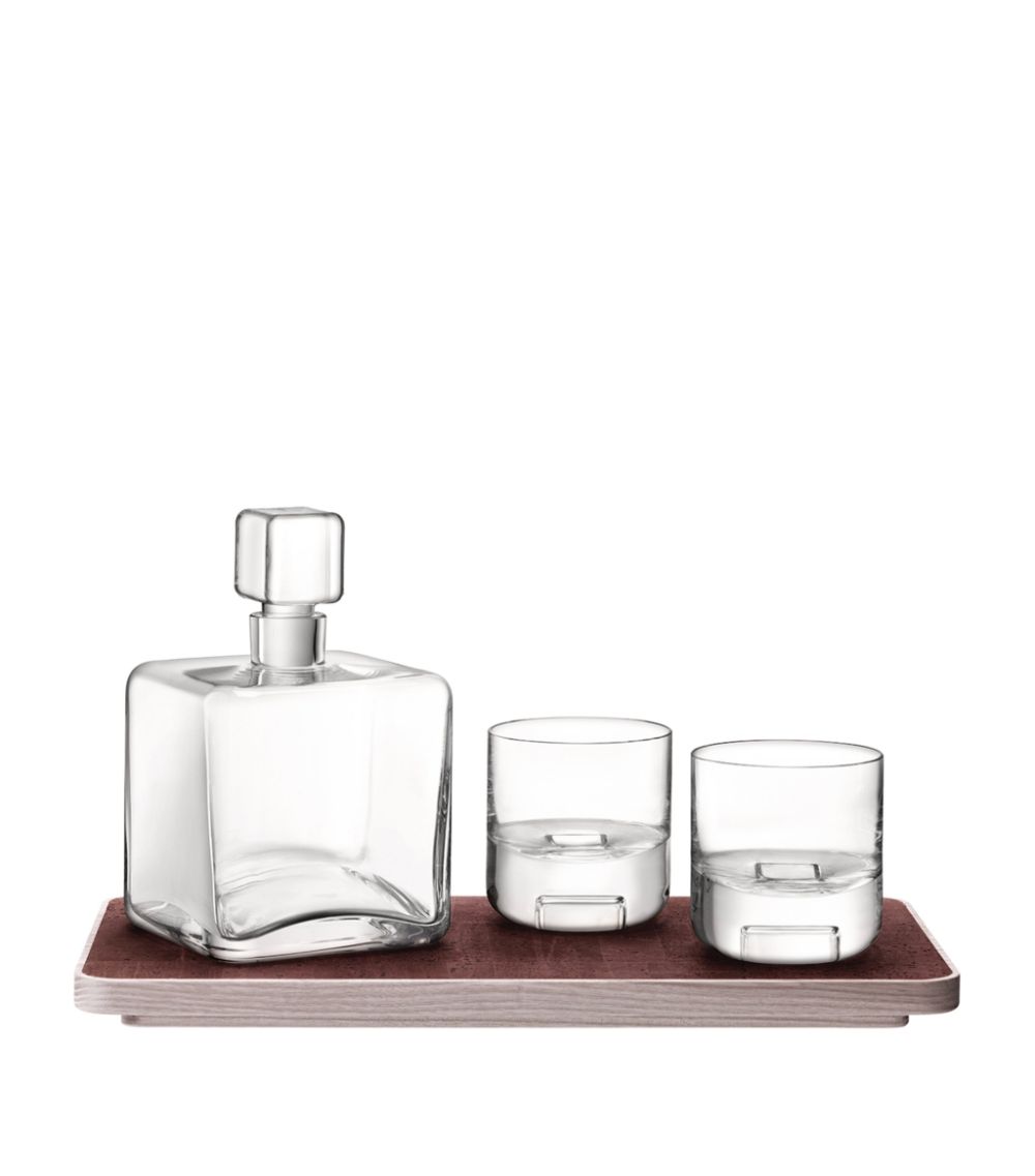 This set from LSA INTERNATIONAL, which is presented on a stylish ash tray with cork veneer, is a need for any whisky enthusiast. It's the ideal set for sharing a late-afternoon drink with a close friend because it comes with two weighted tumbler glasses and a sophisticated cube decanter made by expert artisans.