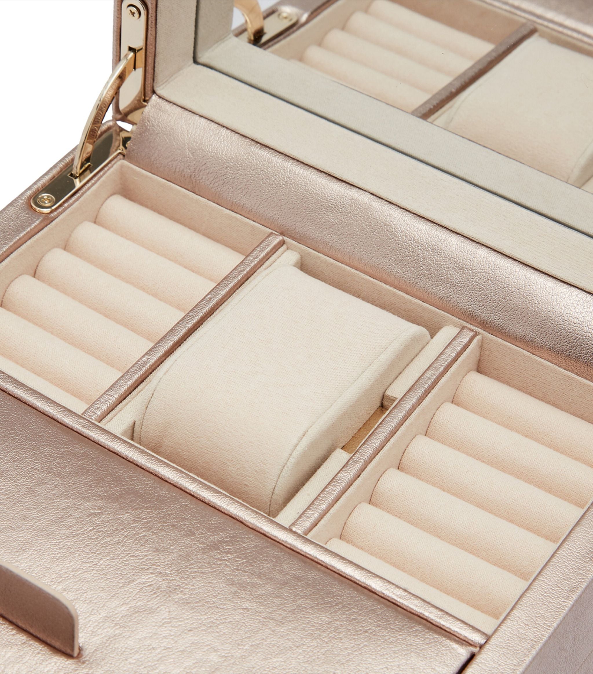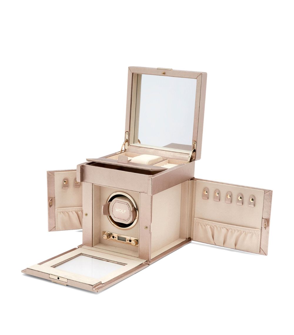WOLF pushes the limits further with its Palermo winders, which not only keep your watch ticking but also store your most valuable items in the elegant storage compartments. Place it on your bedside table, or carry it in your hand luggage when traveling abroad.